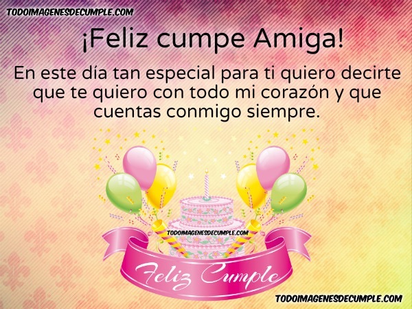 ¡Feliz cumple Amiga! En este día tan especial para ti quiero decirte que te quiero con todo mi corazón y que cuentas conmigo siempre.