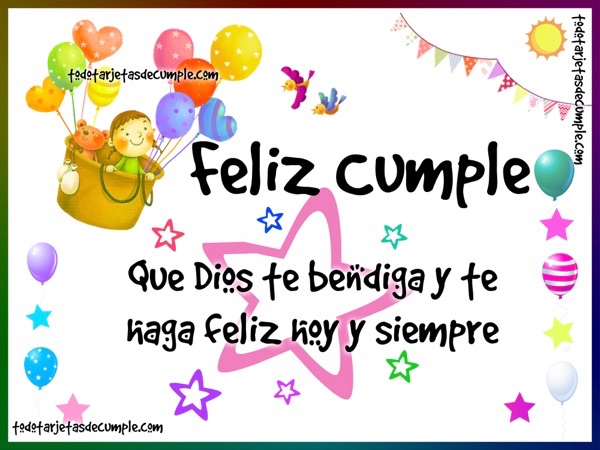 A continuación les dejamos las 3 tarjetas con frases cristianas de bendiciones, de fondo tienen adornos alégoricos a los cumpleaños como globos, estrellas, banderines entre otras cosas: