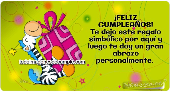 Esa es la frase que tiene la tarjeta de cumpleaños que les dejamos a continuación. Como podrán ver más abajo, es una tarjeta con un diseño muy lindo y divertido que tiene una cebrita sosteniendo un regalo y la frase anteriormente citada que es una felicitación de cumpleaños.