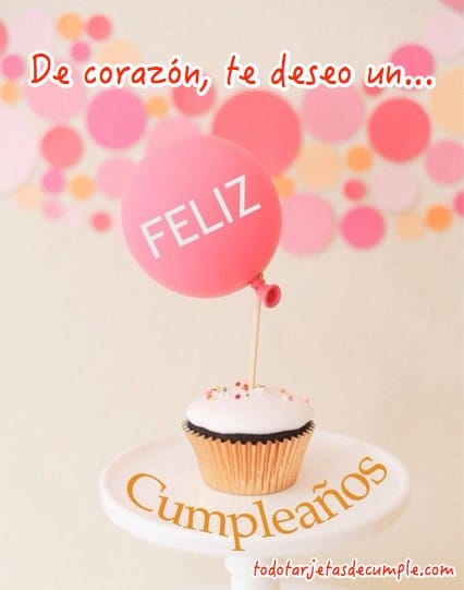 Si están buscando tarjetas de cumpleaños gratis, hoy están de suerte porque les queremos dejar este hermoso modelo que tiene un diseño muy simple pero que sabemos que les va a gustar. Como pueden ver, es una tarjeta que tiene colores pastel y un cupcake con un globo. Además de eso hay una frase que dice lo siguiente: "De corazón, te deseo un feliz cumpleaños".
