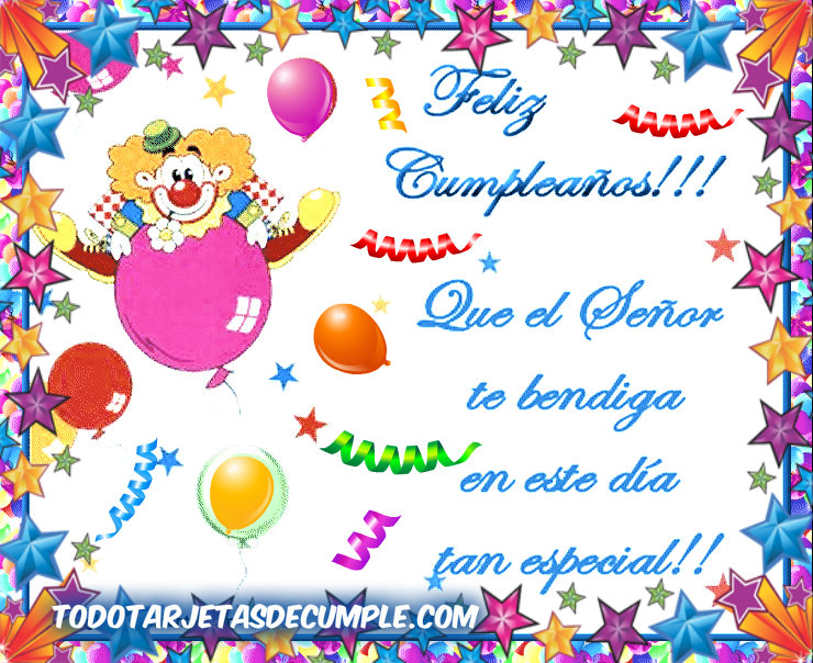 Modelo de tarjetas de feliz cumpleaños con muchos colores y la frase: "Feliz cumpleaños!! que el señor te bendiga en este día tan especial". Descárgala para utilizarla gratis!.